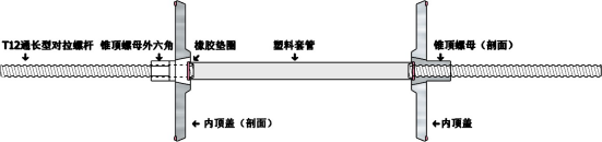 5、“錐頂合成螺桿”及“內(nèi)頂蓋”在模板支護(hù)中的配合